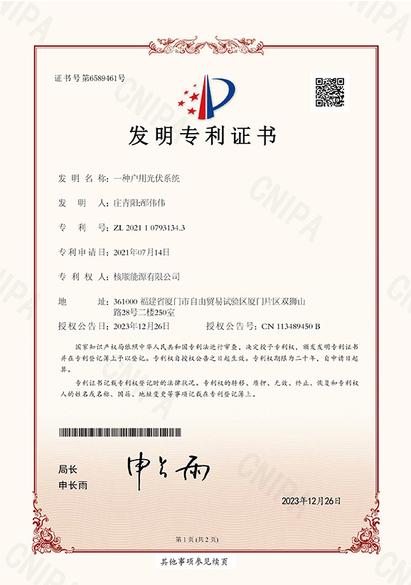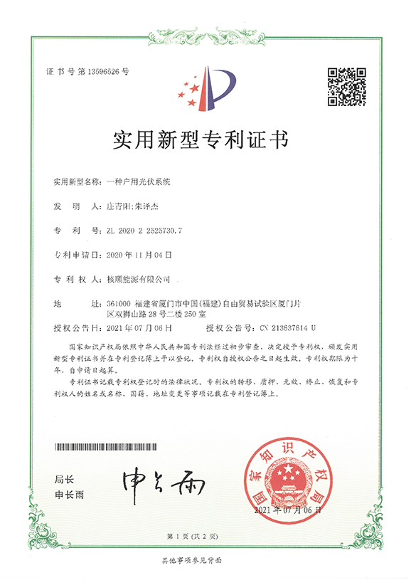 憑借核順投資集團(tuán)在光伏電站項(xiàng)目投資領(lǐng)域的深耕積累,公司始終秉持為客戶提供更安全、更可靠的綠色能源發(fā)展理念,以廈門總部為發(fā)展起點(diǎn),在東部沿海省份投資建成并運(yùn)營了千余戶分布式光伏屋頂項(xiàng)目,客戶涵蓋可口可樂、中集集團(tuán)、臺(tái)灣聯(lián)電集團(tuán)、林德叉車、貝萊特、柯銳世等知名企業(yè)。公司先后獲得“國家第一批智能光伏示范項(xiàng)目”“廈門市重點(diǎn)節(jié)能技術(shù)應(yīng)用案例”“廈門市合同能源管理示范項(xiàng)目”“國家科技型中小企業(yè)證書”“廈門市專精特新中小企業(yè)”“創(chuàng)新型中小企業(yè)”等多項(xiàng)榮譽(yù),并擁有多項(xiàng)自主創(chuàng)新專利產(chǎn)權(quán)。致力于成為全國優(yōu)秀的綠色公平能源解決方案提供商,持續(xù)為國內(nèi)綠色清潔產(chǎn)業(yè)發(fā)展貢獻(xiàn)力量!